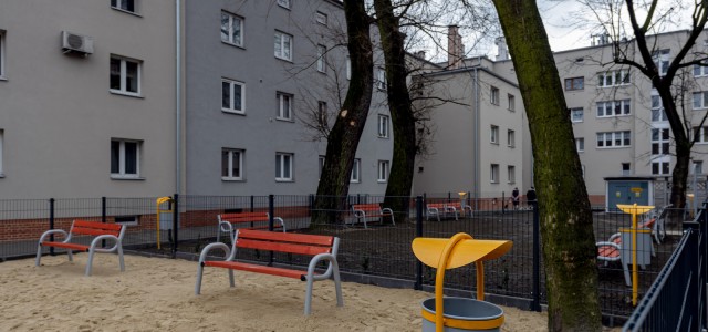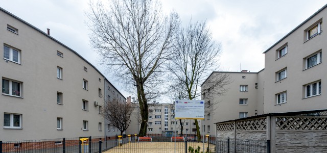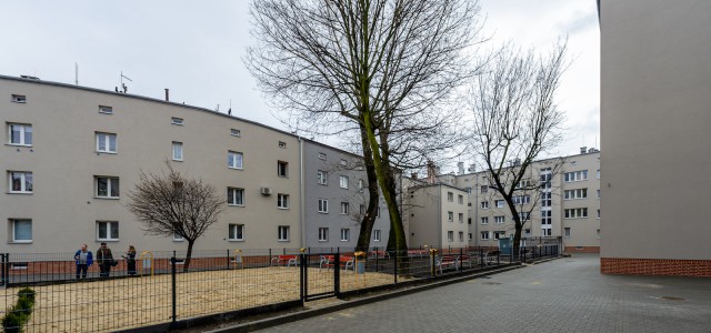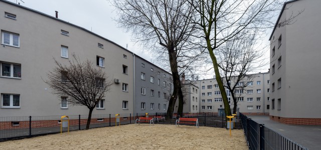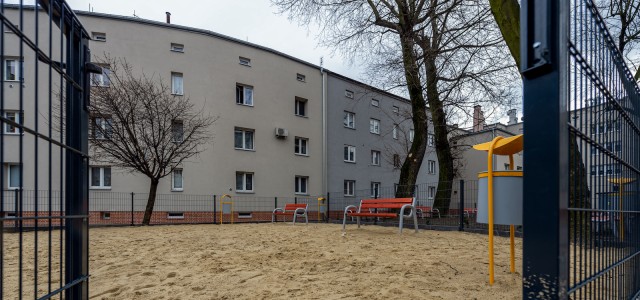 Rewitalizacji budynków towarzyszyły też prace polegające na zagospodarowaniu 2,5 tys. mkw. tamtejszych podwórek. Powstały nowe chodniki, ogrodzenie, wygrodzony wybieg dla psów. W podwórkach pojawiły się ławki, kosze na śmieci, nowe nasadzenia i udogodnienia dla osób z niepełnosprawością takie jak np. podjazdy, tabliczki z napisami brajlowskimi.