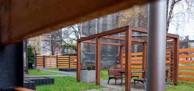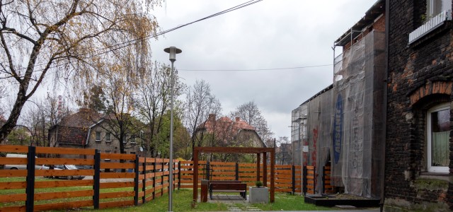 Nowy wygląd zyskało też podwórko przed remontowaną kamienicą przy ul. Zabrzańskiej 126. Tam także konieczne było wyburzenie budynku gospodarczego o powierzchni 117 mkw. oraz zagospodarowanie działek, w tym w szczególności budowę wiaty śmietnikowej, obiektów małej architektury, czyli ławek, koszy na śmieci i stojaka rowerowego. Teren zyskał estetyczne ogrodzenie, a całość dopełniają nasadzenia, oświetlenie i monitoring.