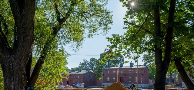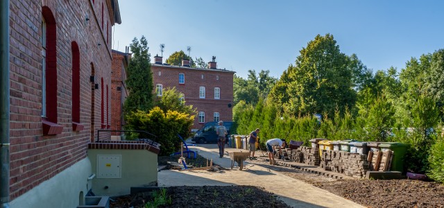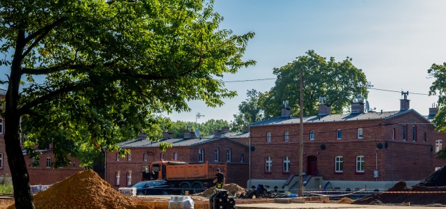 Na osiedlu trwają także intensywne prace polegające na zagospodarowaniu terenów wokół budynków. W ramach inwestycji powstaje m.in. plac sportowy, budowane są nowe chodniki, a całości dopełnią tablice informujące o historii osiedla, elementy małej architektury oraz nasadzenia zieleni. Teren zostanie oświetlony i zlikwidowane zostaną bariery architektoniczne.
